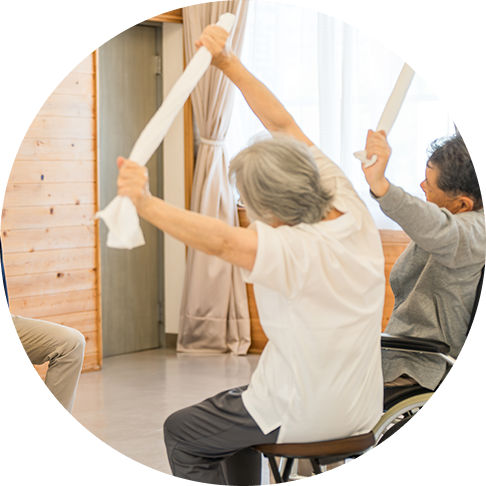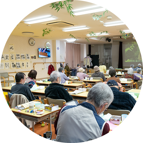 ボランティアの方々による歌謡舞踊や体操、利用者様参加型の歌声広場やのど自慢、